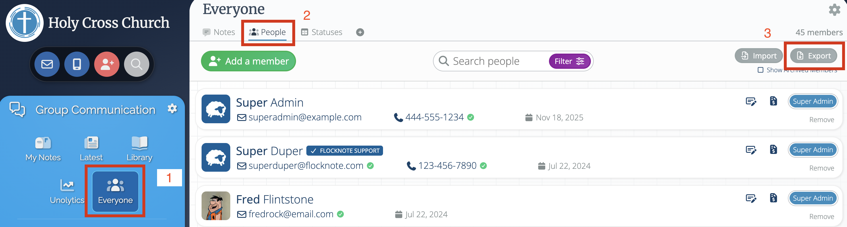 Why's that important, you ask? This is a helpful feature for networks with Flocknote Complete, our all-in-one household database upgrade (click HERE to learn more). Since the Flocknote system recognizes members by their email address and/or phone number, a member without any contact info (like children, for example) was hard to import and update with all the added custom field data that Flocknote Complete users get access to. When you export your members, we'll auto-assign each person a Flocknote ID so that you can update the spreadsheet/add various custom fields, and then import it back in. The system will recognize the member by their Flocknote ID, regardless of if they have contact info on file or not. Woohoo!