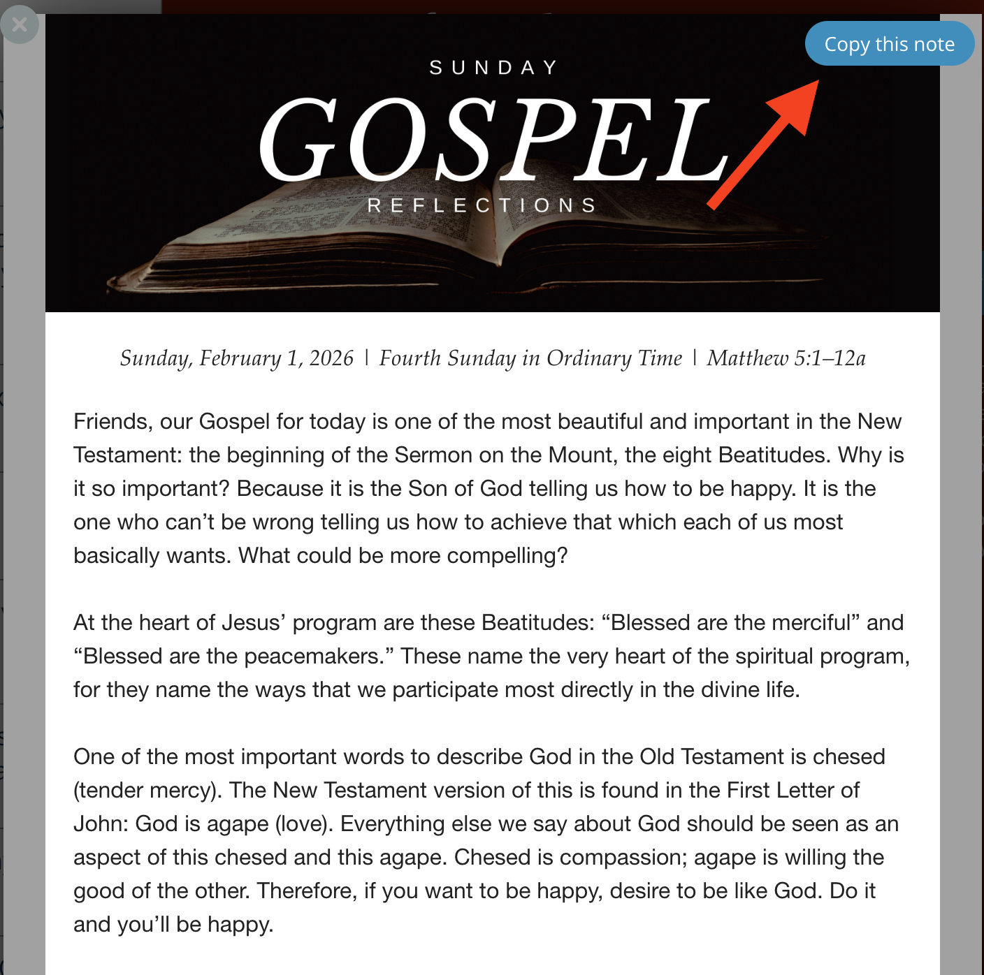 Creating your note from scratch and adding Bishop Barron's content