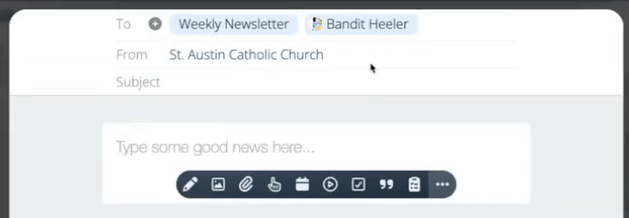 Please note: If you are a Super Admin, the "from" name for the note will default to the name of your network (which is typically your church name). If you are a Group Admin or Note Sender, the from name will default to your own name.