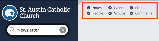 Using the SuperSearch, you can filter by one or more options for your search, like Notes, Events, Files, People, Groups, and Comments.