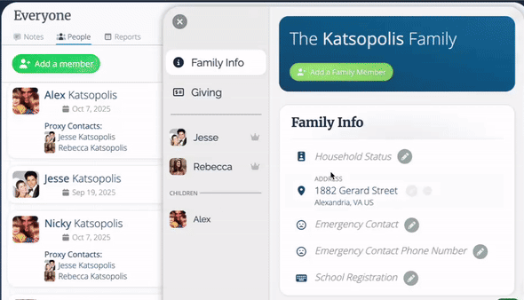 There are several ways admins and/or members can create household groupings. Let's start with a few options for Flocknote Admins.