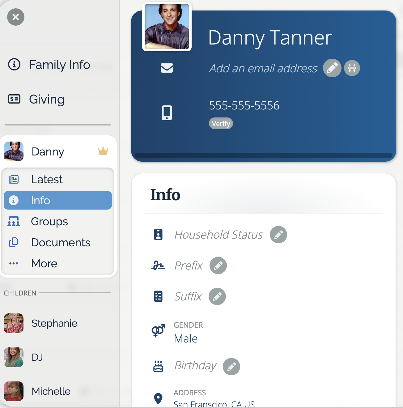 Note: This feature is only available for applicable fields. For example, Gender or Baptism Date would not be able to be automatically shared across members of a household.