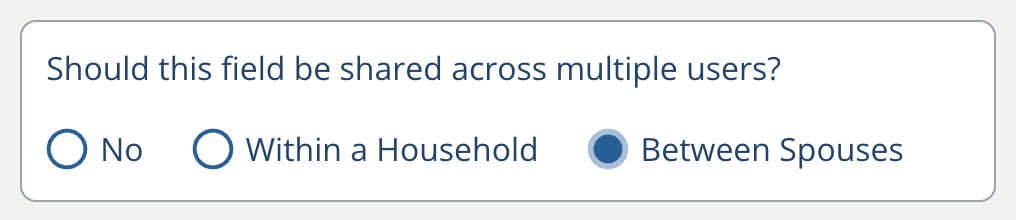 You can set specific profile fields to automatically share between spouses or everyone in the household! You can find this setting by clicking on the settings cogwheel at the top right of any group's page, and then clicking on one of the profile fields for that group.