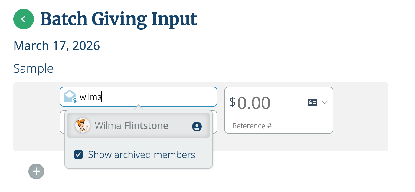 Once on the input page, type in the various boxes to add info. You can input by envelope # or locate specific member profiles by typing out their names until a dropdown appears.