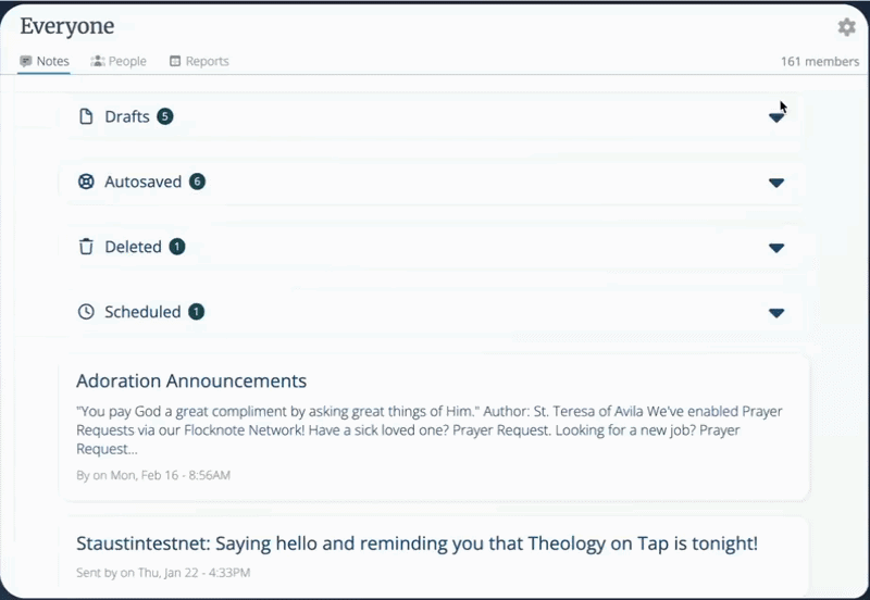 Please note: At this time, drafts, previously sent notes, autosaved, and scheduled notes will need to be deleted manually. However, we hope to offer the option to bulk-delete them in future updates!