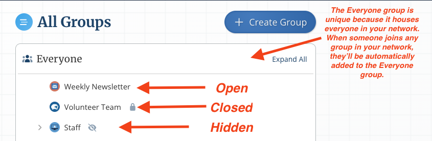 Open, Closed, & Hidden Groups