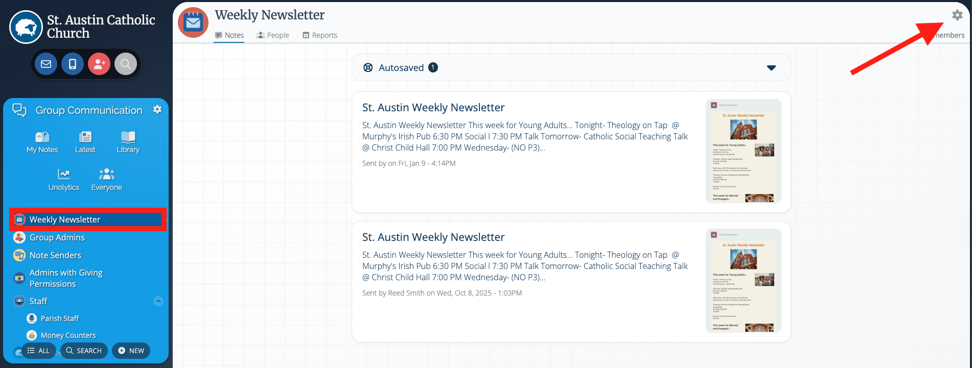2. Click on the grey cogwheel icon in the top right-hand corner and then click Group Settings.
