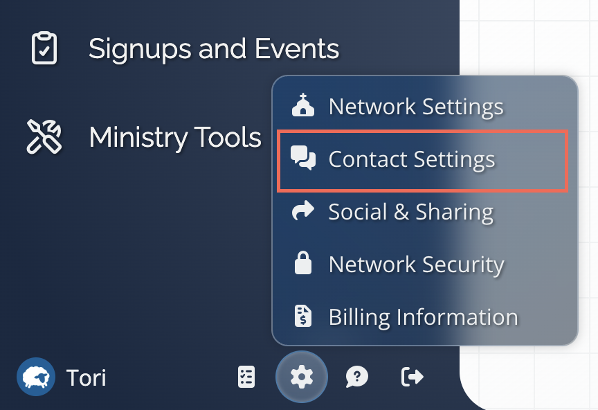 Once selected, a menu will appear where you can adjust all of the Contact Settings on the network.