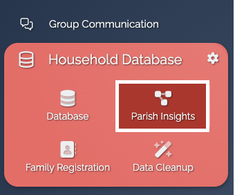 The Insights feature includes high-level summaries of your parish's giving data, family, age, population, and gender demographics, as well as insight into the sacramental life of your parish.