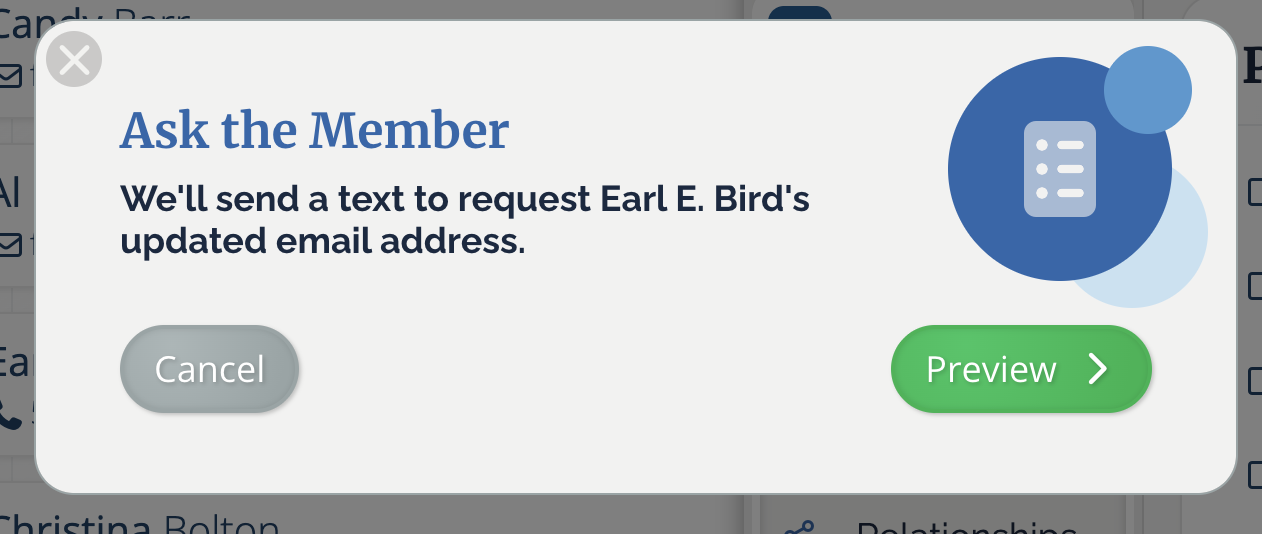 When a member receives the message to update their info, they can do so in just a few clicks! Here's a sneak peek of the email/text your members will receive: