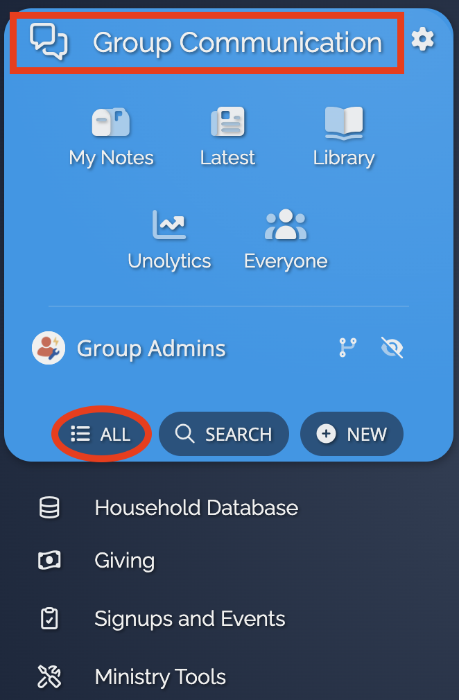 - Click the Group Communication tab in the Dashboard, then select All