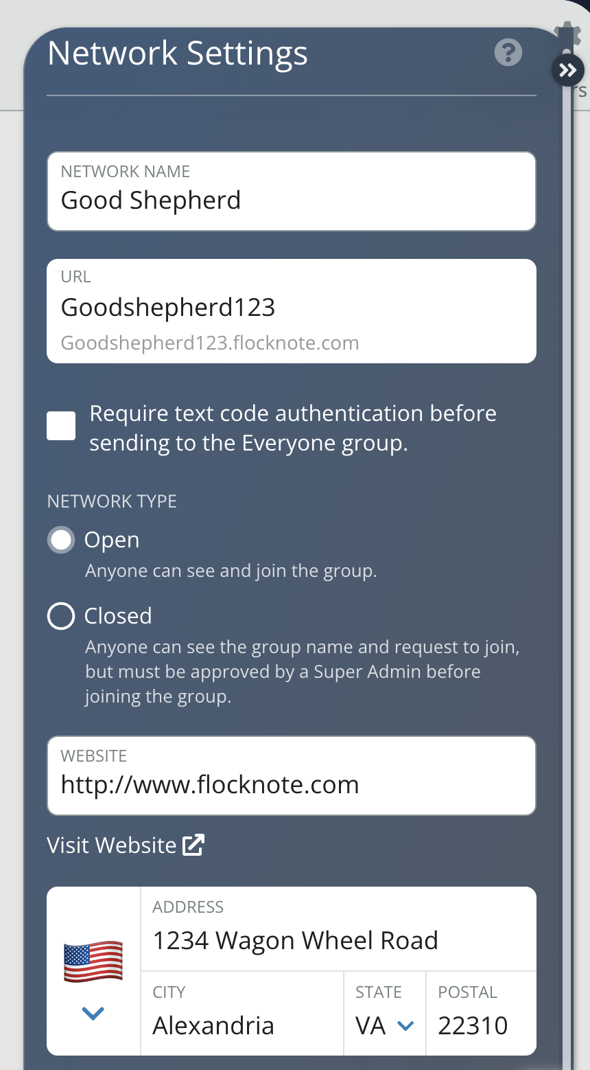 - Address β Add or update your church address at any time. This will also appear at the bottom of any notes that your network sends.