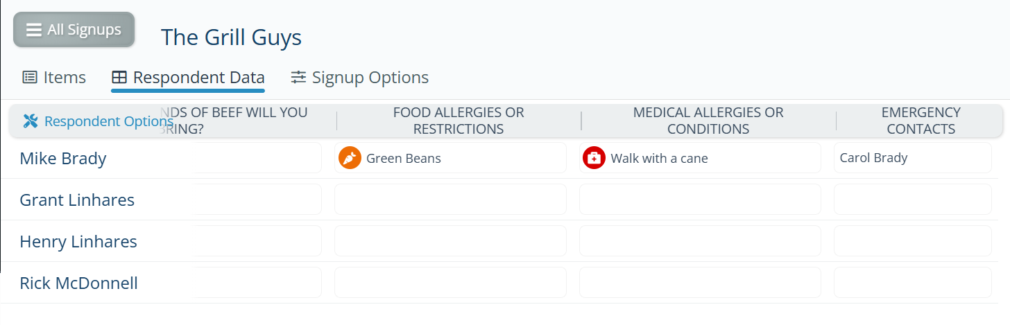 - Emergency Contacts and Allergy & Medical Conditions work in all places that have reports, such as standalone network Reports, group Reports, and Signup Reports. Learn more about Reports HERE.