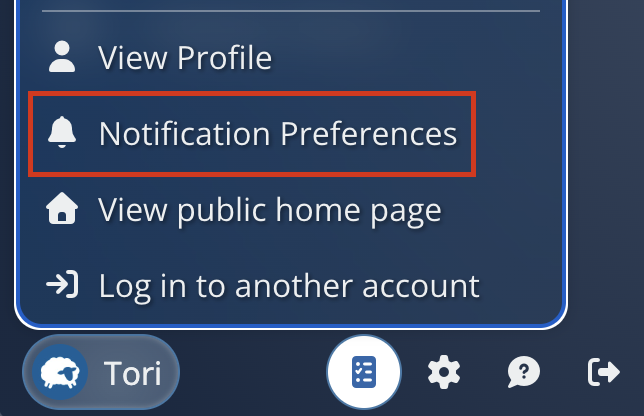 Log into Flocknote and adjust your notifications by selecting your name at the bottom left-hand side of the page. From there, a menu will appear, and click Notification Preferences.